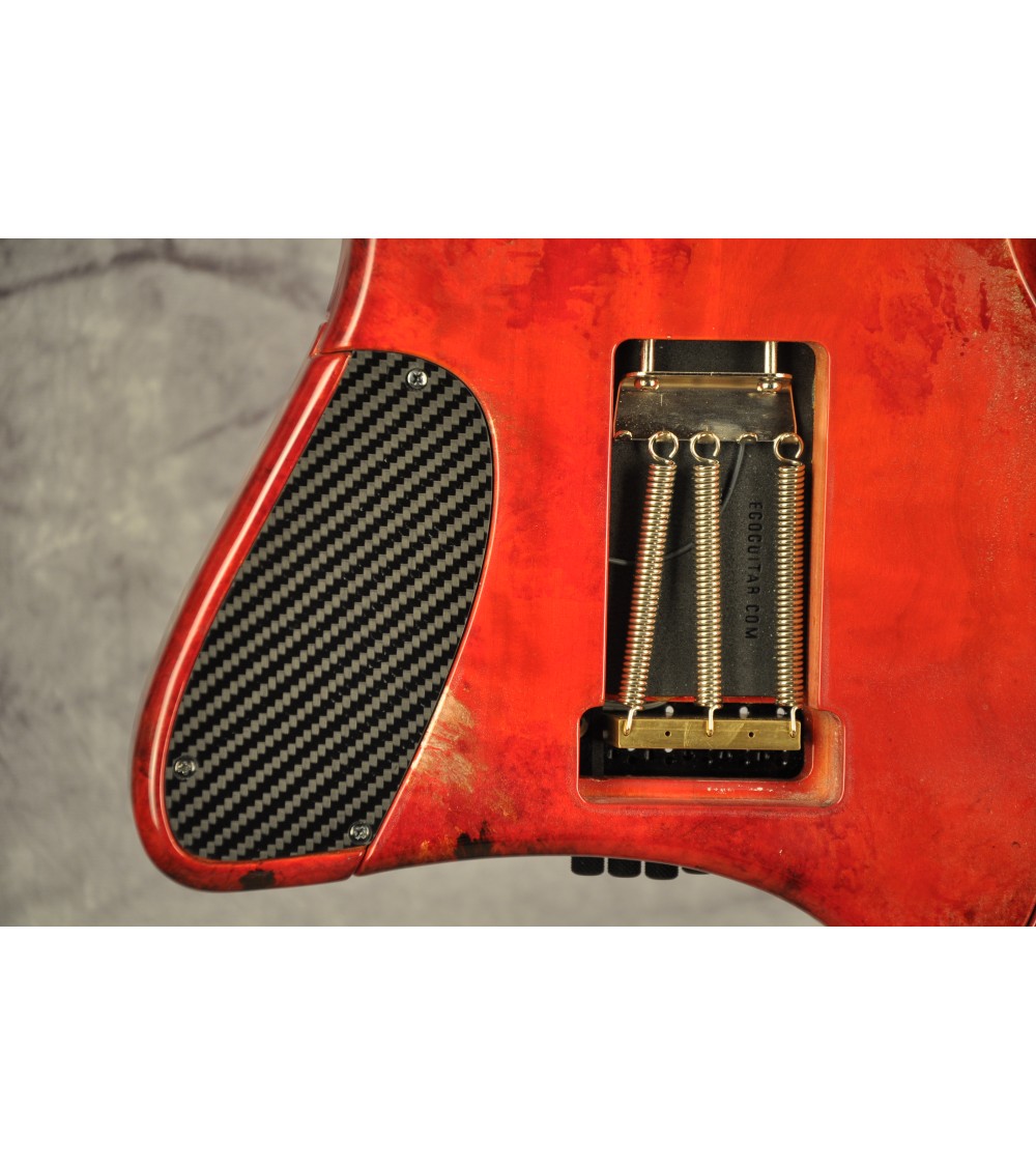 Standard 25.5″ tuning fork, extremely stable composite fingerboard, 0 titanium frets. A multitude of sounds with its 3 pickups and the single-saddle piezo on the floating bridge, outputs that can be mixed in variable proportions. This piezo system does not change volume using the lever and is MIDI ready! Brass, stainless steel and titanium bridge milled from solid with robotic technologies and leveling bubble for quick setup. Tuning takes place from the bridge in a fluid manner thanks to all couplings on ball bearings. Hi gloss carbon fiber pickguard gives a very modern contrast look. Possibility of tight rope adjustment with the exclusive drum system. Variable back neck curvature that follows the rotation of the shoulder and marks a turning point in the way of thinking about comfort, joining the CHASSIS with asymmetric XXL neck joint: the only one capable of increasing the musician's performance.
